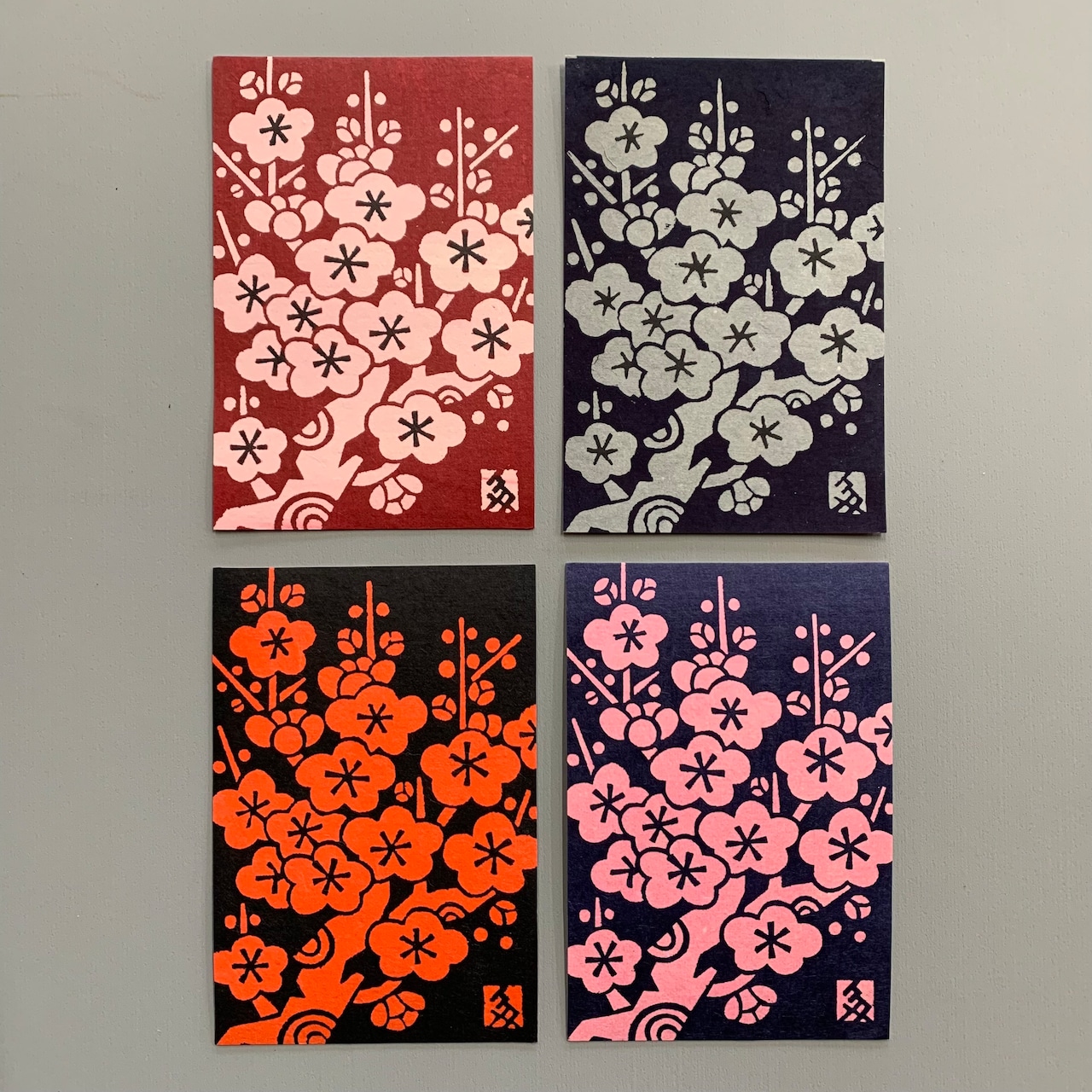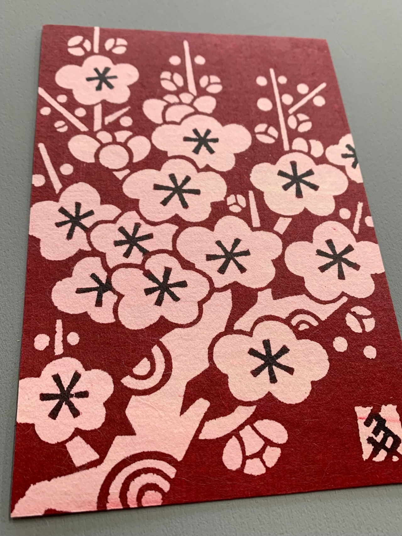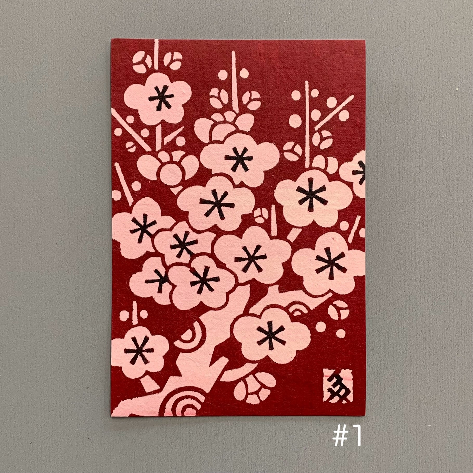 型染めという手法で1点ずつ手染めした和紙はがきです。