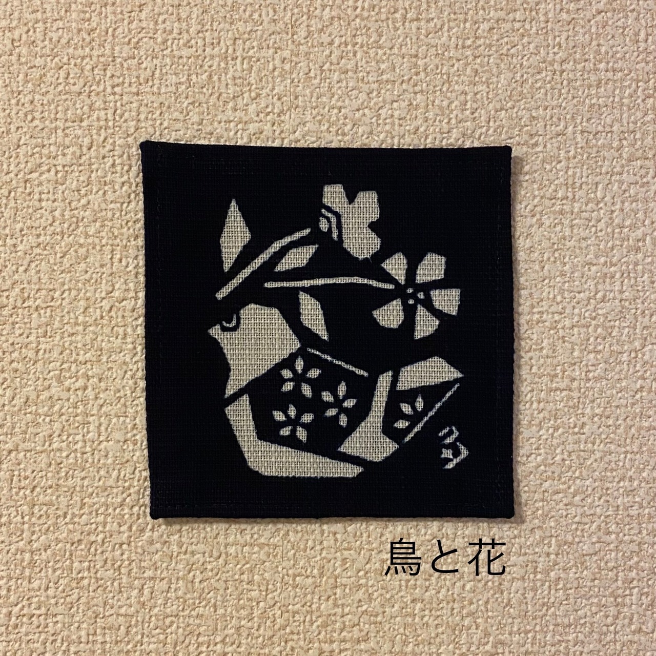 木綿に型染めで藍染めをした猫 生き物のコースターです。