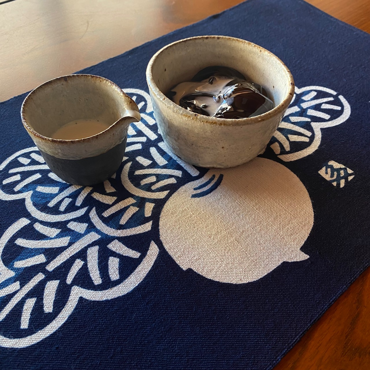 型染めという手法で1点ずつ藍染めをしたランチョンマットです。