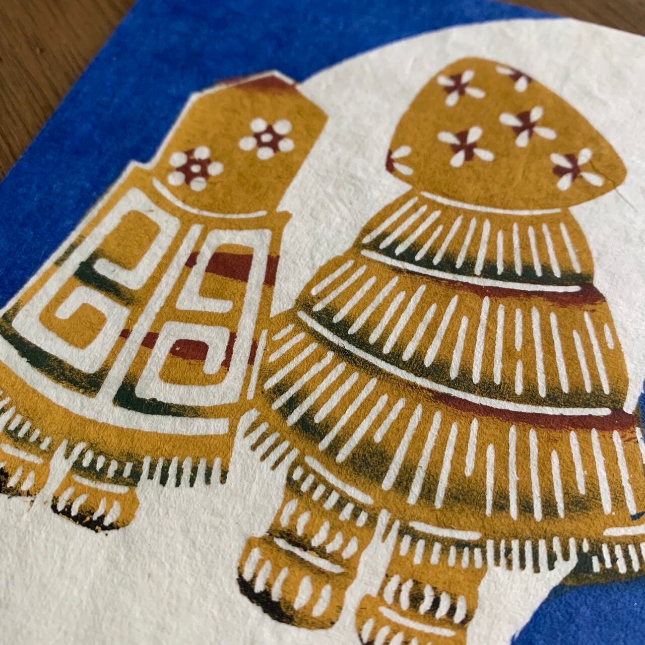 型染めという手法で1点ずつ手染めした和紙はがきです。